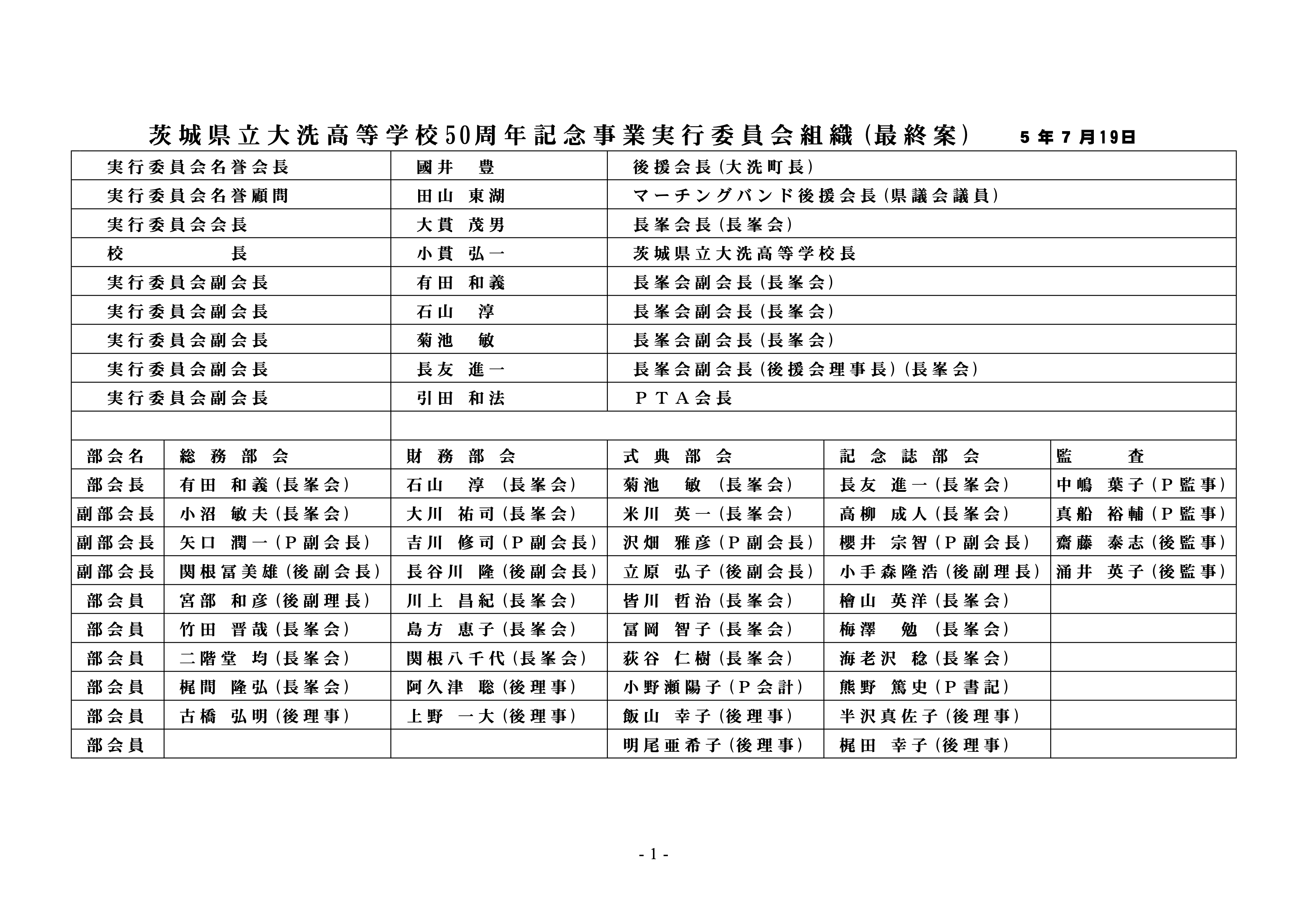 さて大洗高校は、昭和49年4月に開校し、令和5年には創立50周年という節目の年を迎えようとしております。一昨年の総会におきまして準備委員会が発足され、先ずは50周年記念事業の成功を目標に活動を進めております。